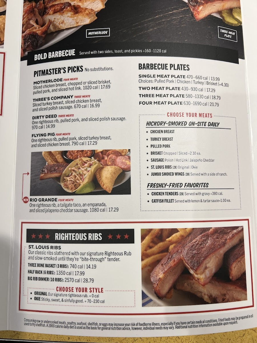 A righteous rib, pulled pork, sliced chicken breast, and sliced turkey breast. Served with two sides.